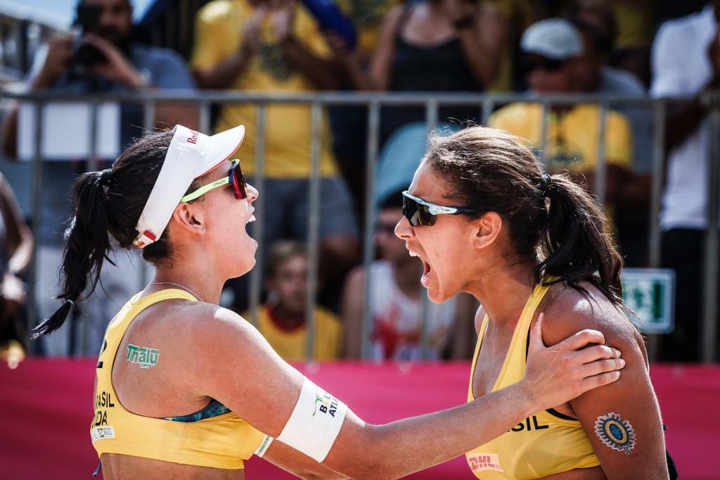 Na disputa do ouro, um jogo ainda mais incrível! Com o apoio da torcida do Praia Clube, Duda e Ana Patrícia, dupla da casa, foi empurrada para mais uma conquista na temporada. As campeãs do Mundo tiveram que enfrentar a excelente dupla do CT Cangaço formada por Andressa e Vitória. O segundo set foi o clássico “inimigo do fim”, aonde nenhuma das duplas se permitiam parar de lutar. Na base do recurso técnico, Andressa e Vitória superaram as dificuldades e conseguiram arrastar o jogo para o Tie-Break. Porém, no fim, a torcida mineira saiu feliz! Tie-break vencido pela dupla do Praia, mais um ouro para Duda e Ana Patrícia no Circuito Mundial, mas essa prata jamais será esquecida pelas meninas do do CT Cangaço. Um 2×1 para Duda e Ana Patrícia (21×17/27×29/15×11) digno de uma Final de Mundial.