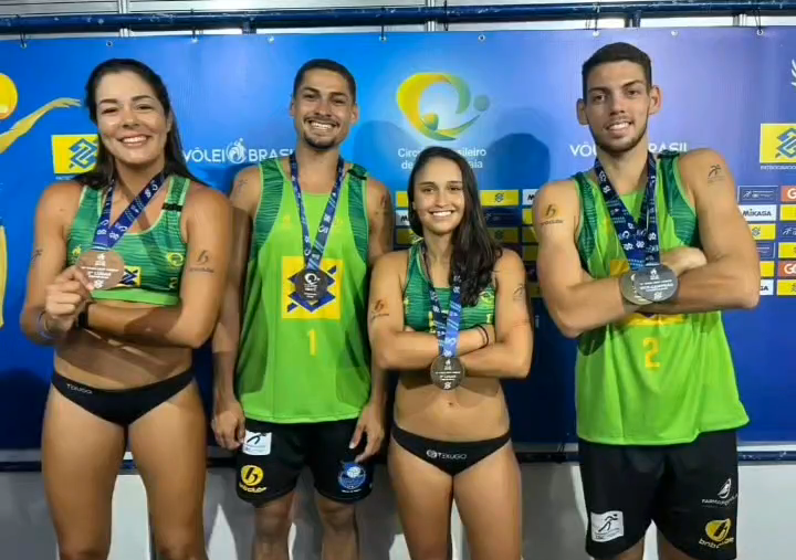 Na 15ª etapa do Aberto do Circuito Brasileiro de Vôlei de Praia, que ocorreu na cidade de Niterói, a cearense Verena e a catarinense Aninha, atletas do BNB Clube, conquistaram a segunda medalha da dupla na temporada. O bronze veio após uma campanha com 4 vitórias e 2 derrotas, em um caminho recheado de confrontos contra cearenses (Teresa e Talita, nas Quartas; Carol Horta e Tory, nas Semifinais; Naiana, na disputa do bronze). A medalha foi garantida em uma virada incrível diante a dupla Naiana (CE) e Vivian (PA). Após um primeiro set estranho e um segundo set doutrinador, o tie-break teve um 9×6 para as adversárias encerrando com um 17×15 sensacional. Verena, a onipresente, como disse o narrador do Circuito, fez o ponto decisivo com o ace incrível. Foi um jogaço das meninas e uma justa medalha para fechar a temporada. Quase matou a torcida do coração naquele tie-break, mas valeu demais torcer por essas craques! Parabéns, meninas! Vocês se garantiram!