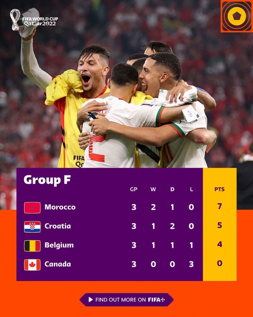 É festa na casa do tio Ali! A melhor surpresa desta primeira fase foi, com certeza, a seleção marroquina. Após 36 anos sem alcançar as Oitavas, a turma de Hakimi e Ziyech passaram num grupo complicado, sem derrotas e com a liderança garantida. No último jogo da primeira fase, vitória sobre o Canadá, confirmando esta histórica copa dos africanos. O Canadá ainda lutou por um empate, para conquistar seu primeiro ponto em Copa, mas este ficou para 2026.