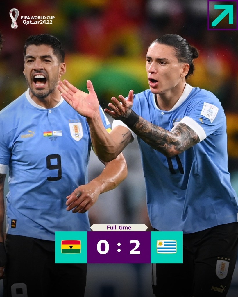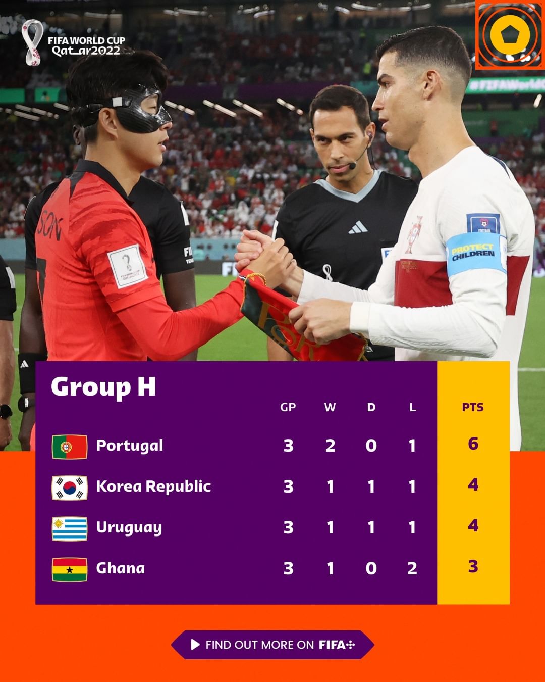 O Uruguai fez a parte dele contra Gana. Aliás, como ocorreu no confronto de 2010, Gana teve a chance em um pênalti, mas como aconteceu na África do Sul, Ayew, como fez Gian, também desperdiçou a chance para os africanos. O castigo ainda veio no primeiro tempo, com dois gols de Arrascaeta. Reserva nas outras partidas, o meia do Flamengo foi fundamental para a primeira vitória e os primeiros gols celestes na Copa. Porém, a vitória não foi suficiente! Isso porque a Coreia do Sul conseguiu virar sobre Portugal (com um gol de Chan aos 46 do segundo tempo) e garantir seu lugar nas Oitavas por fazer mais gols que o Uruguai nessa primeira fase (4×2). Os uruguaios ainda saíram irritados com VAR, devido dois pênaltis não marcados. Portugal terminou na liderança da chave, e jogou hoje com um time misto.