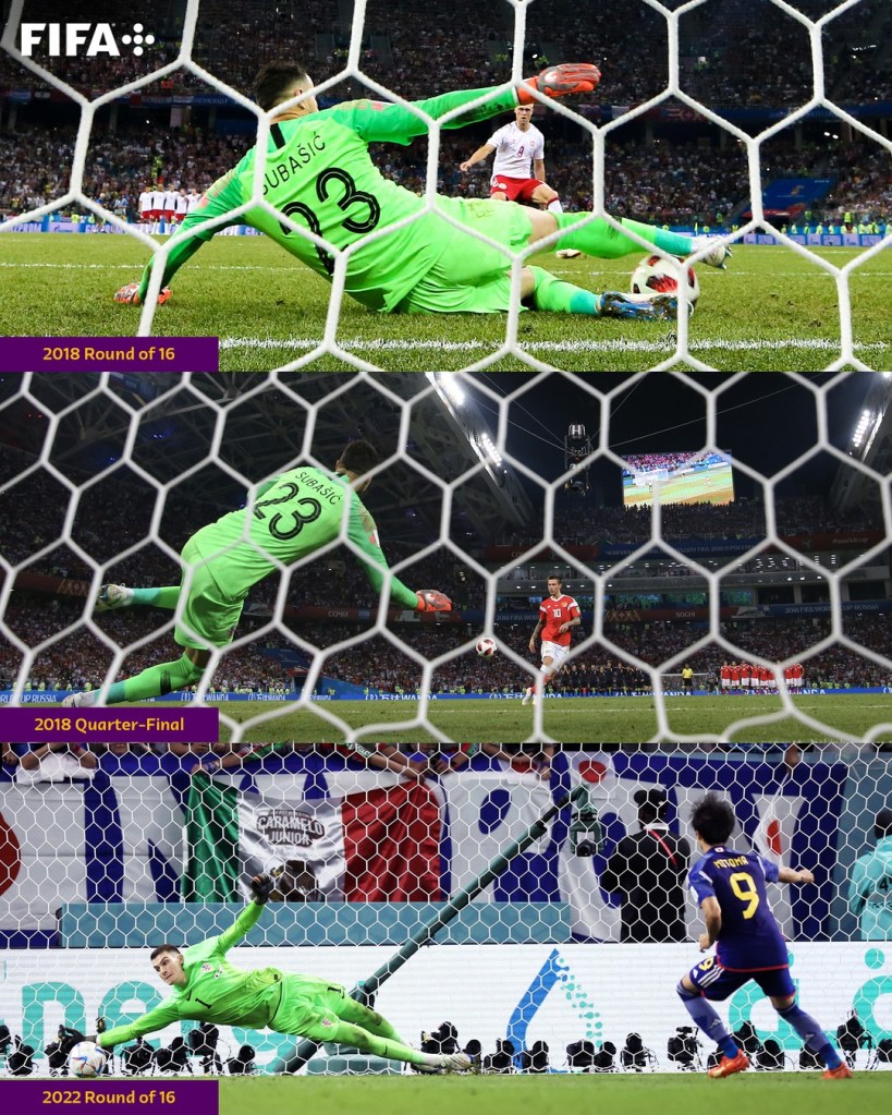 Jogo equilibradíssimo até a disputa de pênaltis! Se teve uma partida, dessas Oitavas, aonde as equipes demonstraram algum equilíbrio, foi a partida entre Japão e Croácia. A surpreendente equipe nipônica, que mandou a Alemanha para casa na fase de Grupos, começou surpreendendo os vices-campeões de 2018, com um gol de Maeda no apagar das luzes do primeiro tempo, após um período marcado pelo “excesso de precauções” de ambos os lados. Precisando buscar o empate, a Croácia partiu para cima dos japoneses no início do segundo tempo, e antes dos 10 minutos, Perisic empatou o jogo. Depois disso, blitz dos eslavos, que ao pouco foi cedendo espaço ao Japão. O equilíbrio refletiu até nos “milagres” de Livakovic e de Gonda, evitando a definição do jogo no tempo normal. Na prorrogação, o medo falou mais alto e pouco se criou em ambos os lados. Primeira disputa de pênaltis dessa Copa tinha que ter a Croácia, seleção que na Rússia, chegou nas Semifinais só via “pênaltis”, e foi aí que acabou o equilíbrio da partida. Livakovic virou o nome do jogo ao pegar 3 cobranças do Japão. Pela terceira vez na sua história, os croatas superam os pênaltis e avançam no “mata-mata”. Já o Japão, pela quarta vez cai nas Oitavas e deixa o sonho das Quartas, novamente, para o próximo Mundial.