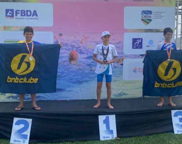 No último Fim de Semana (3 e 4 de Dezembro) ocorreu a disputa do Troféu Ana Marcela Cunha de Águas Abertas, nas categorias Mirim e Petiz na Praia de Inema na Bahia. A equipe do BNB Clube conseguiu se destacar no evento, conquistando o 3º Lugar Geral, mesmo com a equipe reduzida em 4 atletas. A observação fica ao fato de todos terem conquistados medalhas. Vinicius Serio e Matheus Lisboa revezaram a prata e o bronze nos 250 e 500 metros da categoria Mirim. Enquanto que Lucas Boscov e Davi Bandeira conquistaram ouro e prata nos 250 metros na categoria Petiz. Parabéns ao clube, aos treinadores Fábio e Roberto, aos pais, e principalmente aos atletas por alcançarem as conquistas.