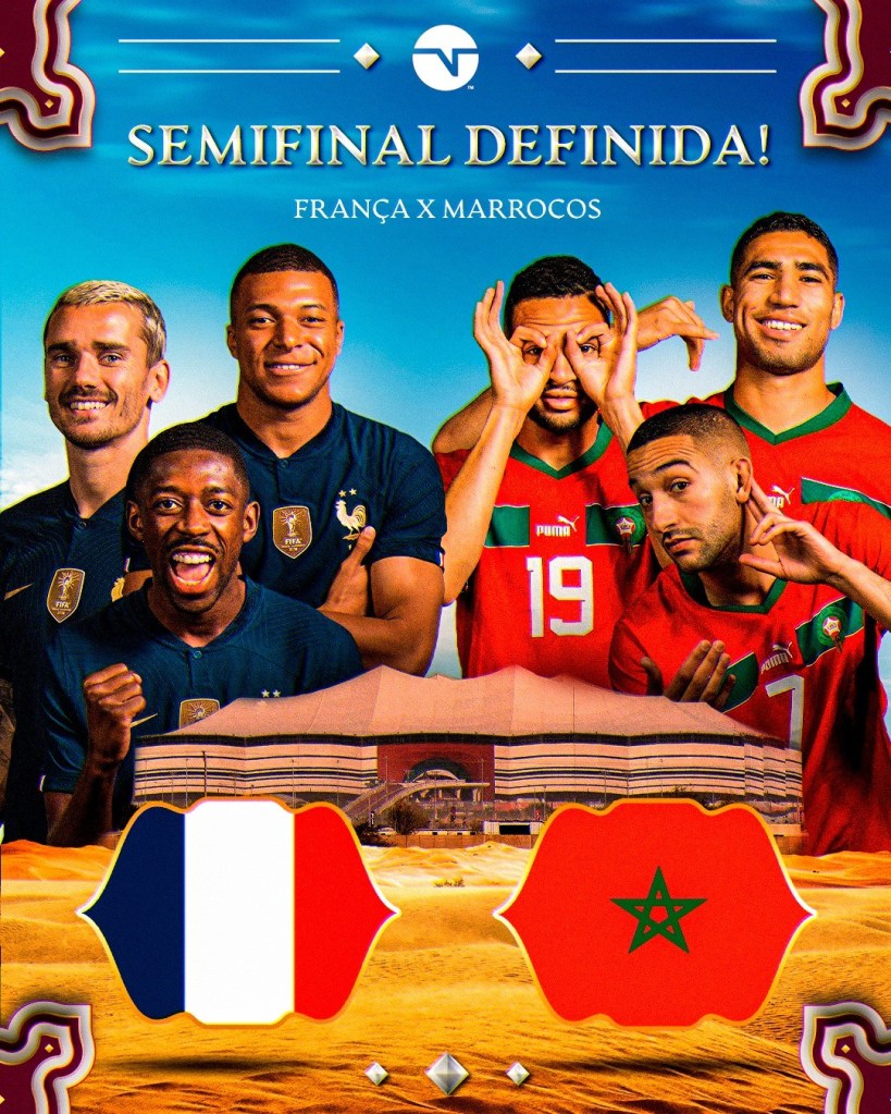 Na Quarta-Feira (14), o Catar ficará pequeno diante a invasão árabe! O Marrocos será, mais do que nunca, o representante do povo do Oriente Médio e Norte da África. Os atuais campeões do Mundo, a França, enfrentarão não apenas uma seleção invicta e que não toma gol, mas sim toda uma comunidade de nações que estão querendo muito, ver o impossível se tornar verdade, exatamente, na Copa do Oriente Médio. Se a França tem Mbappé, Griezmann, Giroud, Lloris, o Marrocos contará não só com seu ótimo, e histórico elenco, formado por Hakimi, Ziyech, Boufal, En-Nesyri, Amrabat e Bounou, mas com toda a fé, e torcida, de uma região que ama futebol, mas nunca sentiu o gostinho da glória tão perto.