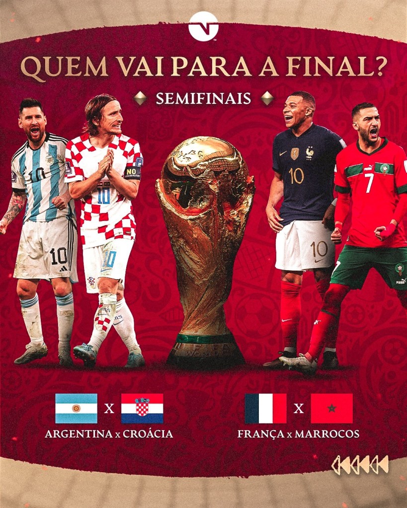 Estamos cada vez mais perto de conhecer o próximo campeão Mundial de Futebol! Na próxima terça e quarta teremos as definições dos grandes finalistas da Copa do Catar.