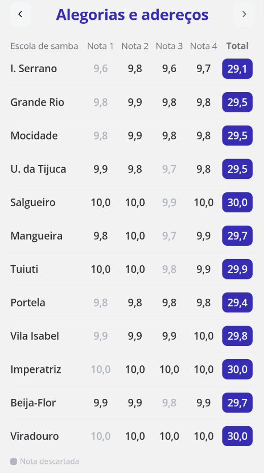 Após a leitura das notas dos 9 quesitos do Grupo Especial do Carnaval Carioca, “habemus” uma campeã, a Imperatriz levou o troféu para casa após longos 22 anos na fila! Além dela, Viradouro, Vila Isabel, Beija-Flor, Mangueira e Grande Rio retornarão no próximo sábado para o desfile das campeãs. Enquanto isso, o Império Serrano retorna para a Série Ouro em 2024.