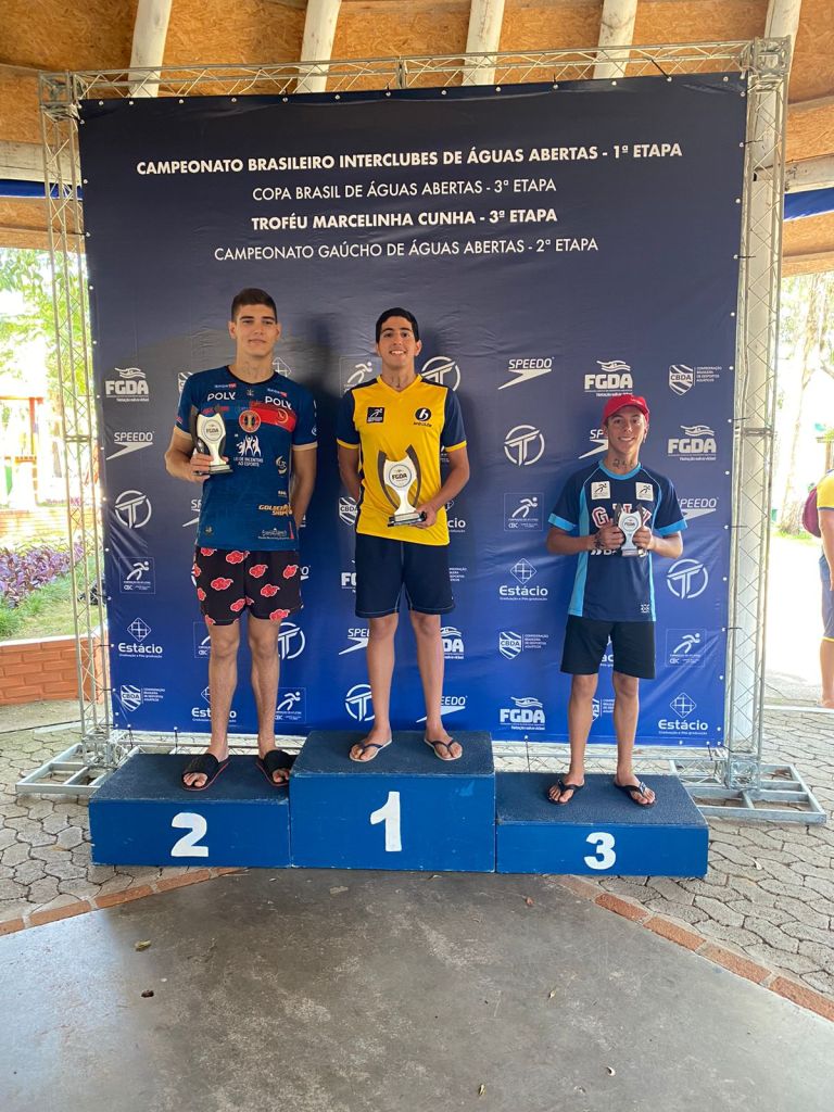 Na Etapa de Porto Alegre da Copa Brasil de Águas Abertas (antiga Maratona Aquática), Felipe Gardano seguiu com sua mania de colecionar medalhas, e novamente, leva a de ouro para casa. Com o tempo de 30m47s (apenas 6 segundos à frente do medalhista de prata), ele garantiu a vitória e mais um título para carreira. O Tio Felipe de Freitas segue todo orgulhoso! BNB Clube e as Águas Abertas estadual seguem em êxtase com o filho da Daniela! É mais uma conquista Nacional para o Esporte Cearense!