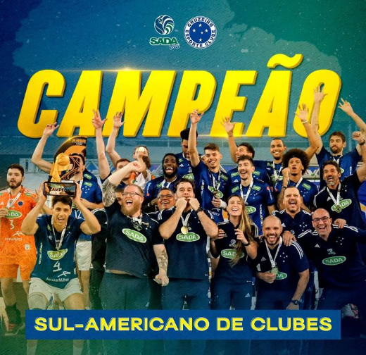 Na tarde deste domingo (19), o Sada Cruzeiro superou o Itambé Minas por 3×1 (25X22 / 25X19 / 22X25 / 25X17) e assim conquistou mais uma vez o título de Campeão Sul-Americano de Vôlei Masculino. É o nono título da Raposa, sendo o sétimo consecutivo! A equipe mineira é a maior campeã do torneio. Miguel Lopez, do próprio Cruzeiro, foi o MVP do torneio.