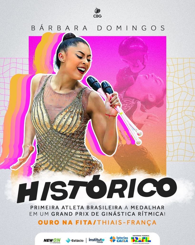 Ela não cansa de fazer história! Depois de duas finais e uma medalha inédita em Mundiais, Babi Domingos consagra seu ineditismo na Ginástica Rítmica brasileira ao conquistar o primeiro Ouro brasileiro em Grand Prix!