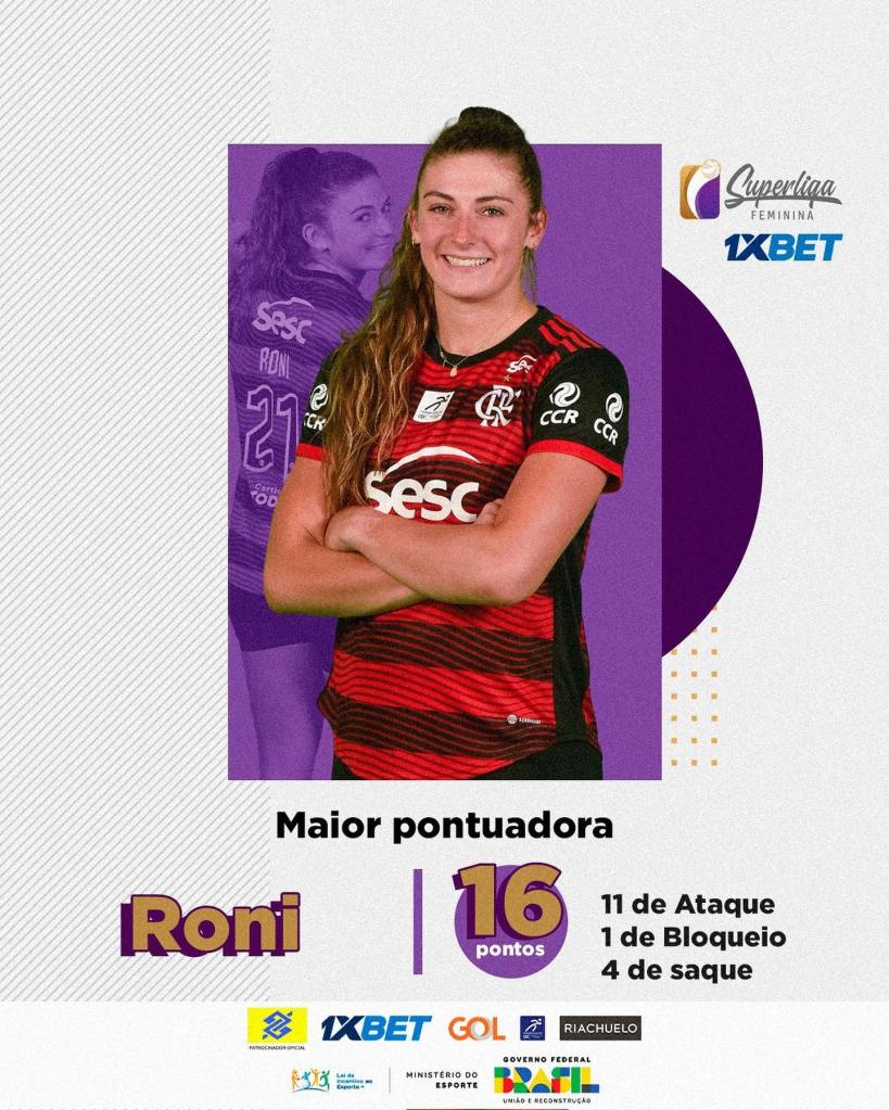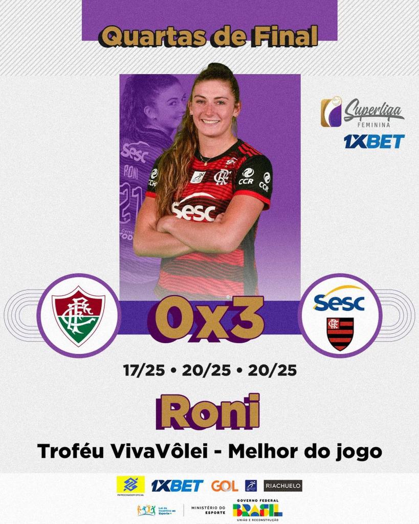 O SESC-Flamengo mesmo jogando como visitante desconheceu a equipe do Fluminense e venceu fácil o primeiro jogo da série de Quartas da Superliga Feminina 2023. Roni foi o nome da partida (pra variar) em uma exibição de gala da equipe rubro-negra.