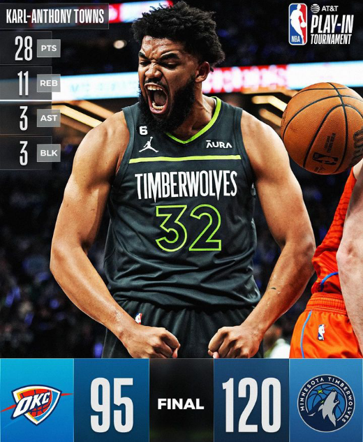 Sem tomar sustos, o Timberwolves garantiu seu lugar entre os 8 melhores do Oeste. Com Towns em noite épica, o Oklahoma City Thunder não chegou a ver se a cor da bola era laranja. Um massacre! Os Lobos agora enfrentarão o fortíssimo Nuggets de Jovic.