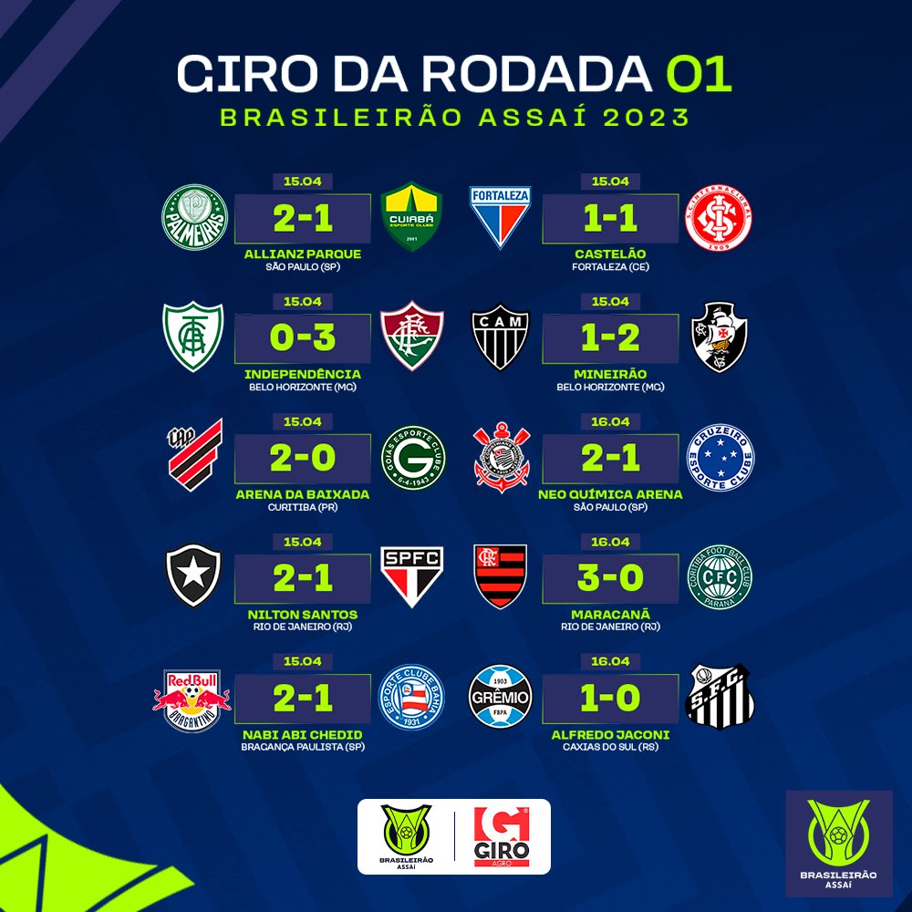 Neste domingo (16) tivemos o encerramento da Rodada Inaugural do Brasileirão 2023.