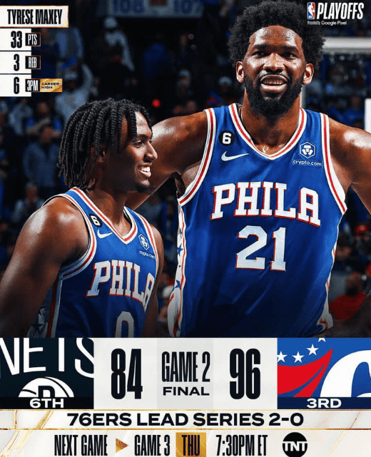 Na Filadélfia, os Sixers não deixaram o time do Brooklyn ver a cor da bola. Embiid e Maxey estavam numa noite impecável! Vitória tranquila e favoritismo se confirmando na série.