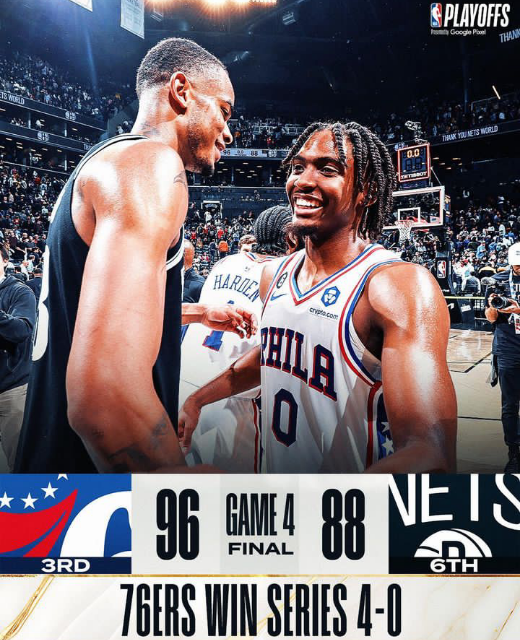 Já pela 4ª Rodada, os Sixers confirmaram o favoritismo sobre os Nets. Em outro jogo sensacional de Maxey, o time da Filadélfia venceu e varreu a série, sendo o primeiro a coroar um lugar nas Semifinais de Conferência.