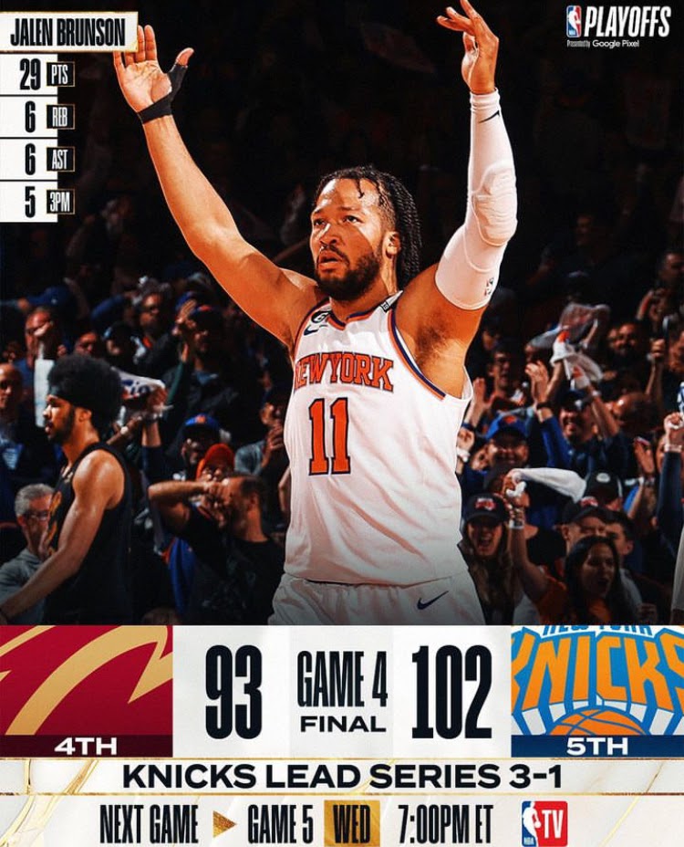No primeiro jogo, o único duelo sem grandes emoções, os Knicks passearam sobre os Cavaliers e encaminharam a sua vaga nas Semifinais da Conferência Leste
