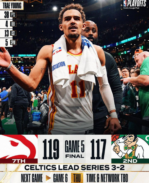 No TD Garden, os Celtics viram as Semifinais de Conferência serem uma realidade até o último segundo do jogo, quando Trae Young ratificou seu momento mágico na temporada, arrancando uma incrível cesta de 3 no último segundo. Uma vitória não do Hawks, mas de Trae Young sobre os Celtics, que precisarão juntar os cacos para visitar o “monstro calvo” em Atlanta.