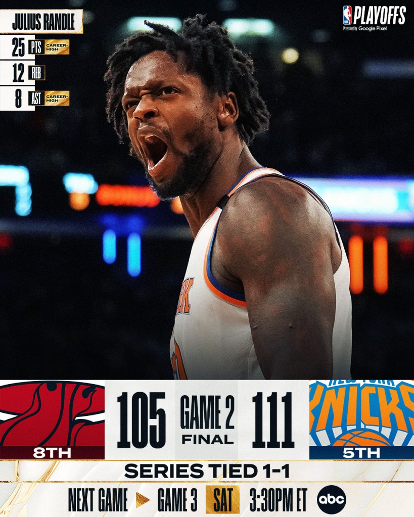 No Leste, mesmo sem Butler, tudo parecia tranquilo para o Miami Heat abrir 2×0 diante os Knicks, mesmo jogando duas em Nova York. Porém, em um último período mágico de Brunson e Randle, os donos da casa conseguiram a virada e garantiram o empate na série. Mais um jogo decidido no final e nos detalhes.