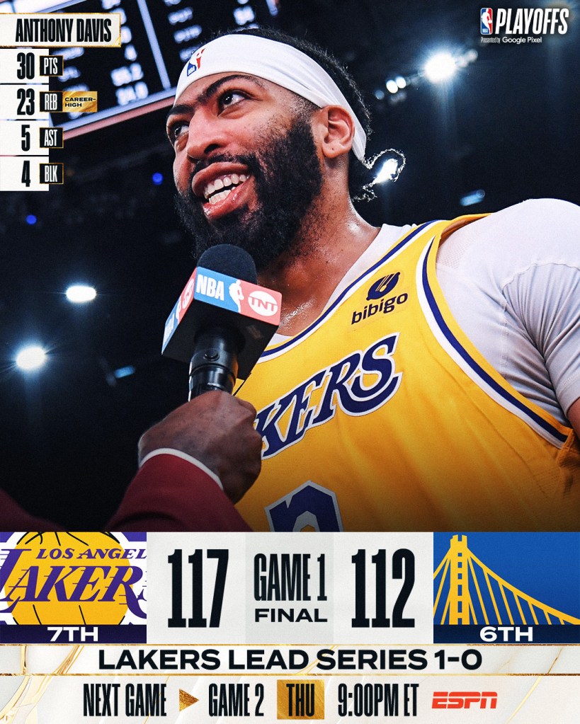 No Oeste, o encontro era entre os Lakers, de LeBron James, e os Warriors, de Stephen Curry. Apesar de ambos brilharem, inclusive, com Curry alcançando a incrível marca de 600 pontos de cestas de 3 em Playoffs, o nome do jogo foi Anthony Davis. Com 30 pontos e 23 rebotes, além de um toco decisivo no minuto final, Davis foi fundamental para os Lakers abrirem a série na casa dos adversários com a vitória garantida. Outra partida decidida nos segundos finais, Poole errou a cesta decisiva a la “Jr Smith”. 1×0 para os Lakers, numa série que o povo quer até o jogo 7.