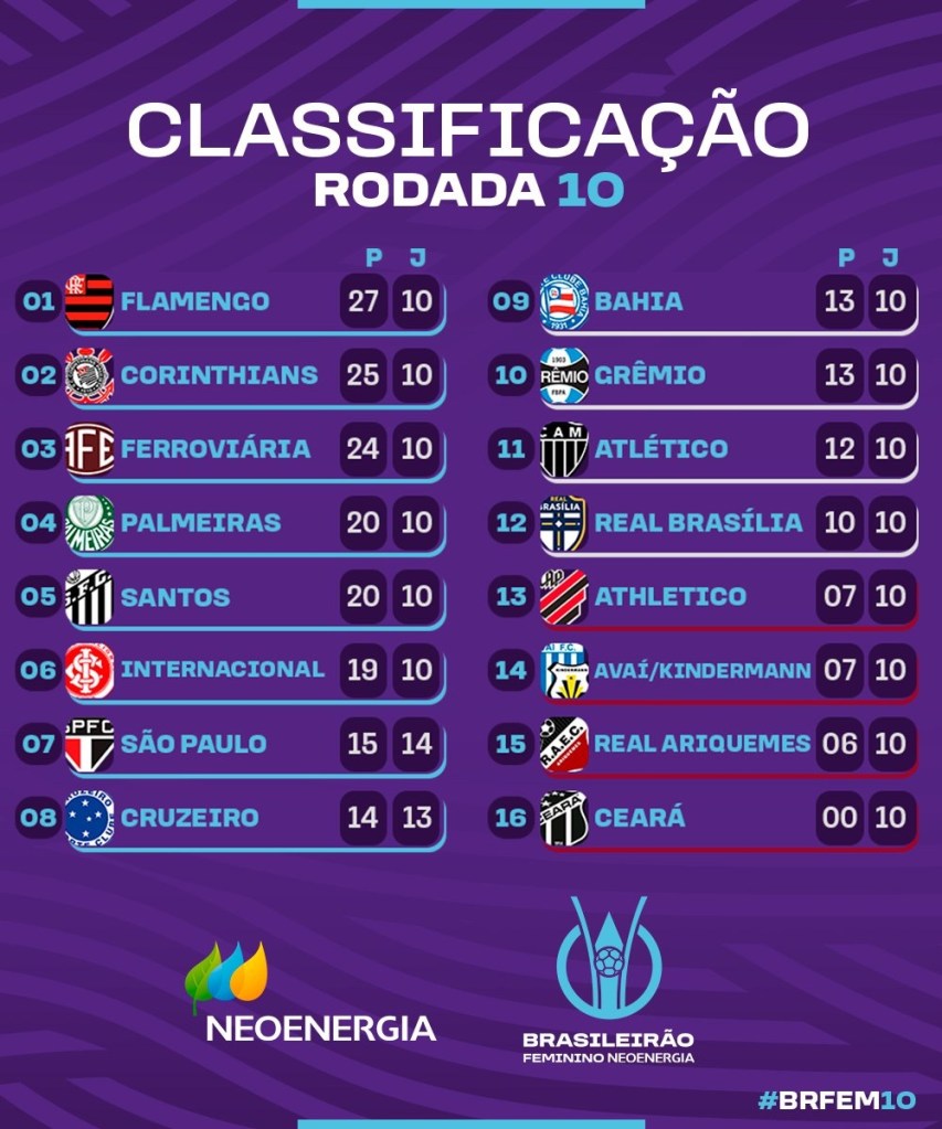 5 partidas movimentaram o Brasileirão Feminino neste domingo (7), uma rodada que buliu bastante com a tabela e a lógica do torneio.