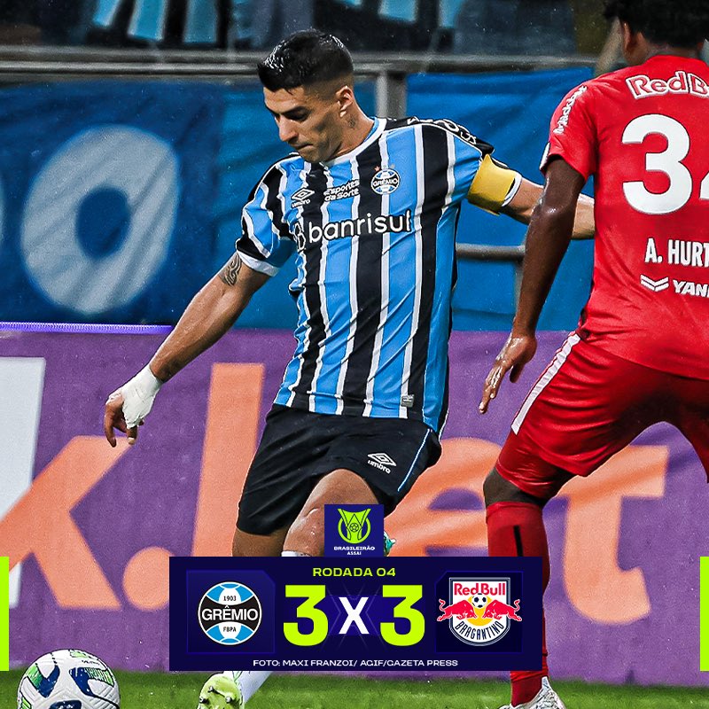 Na Arena do Grêmio, uma partida eletrizante, com um empate delirante de 3×3. O jogo teve duas viradas e um gol de empate marcado pelo Red Bull Bragantino já nos acréscimos.