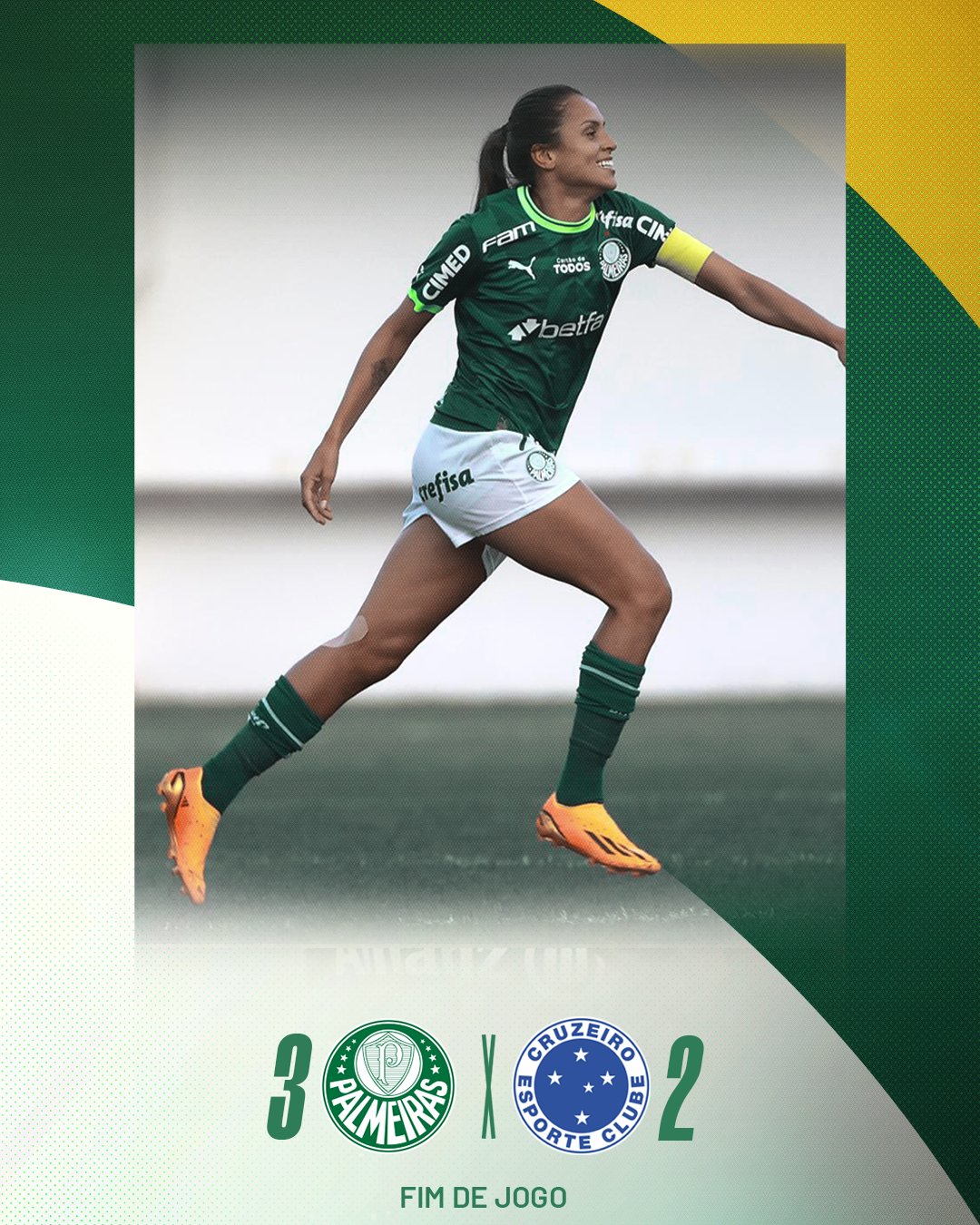 Em Barueri, a lei da ex quase funcionou para o Cruzeiro, visto que Byanca Brasil e Carol Baiana fizeram os gols das cabulosas sobre o Palmeiras. Porém, Duda e Amanda Gutierres, duas vezes, garantiram a vitória das palestrinas. O resultado deixou o Verdão à um ponto das Quartas. Já o Cruzeiro saiu do G8.