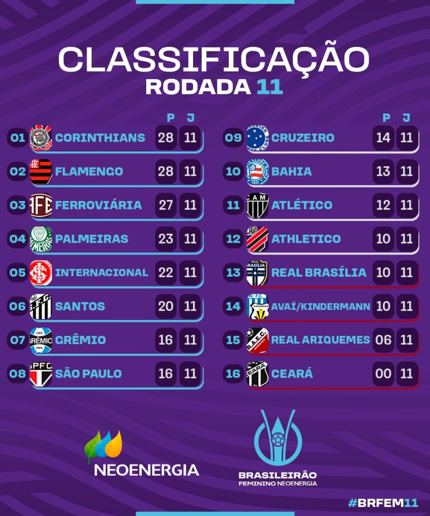 A 11ª Rodada foi emocionante! Inicialmente, Parabéns para Flamengo, Corinthians e Ferroviária, as primeiras equipes garantidas nas Quartas do Brasileirão.