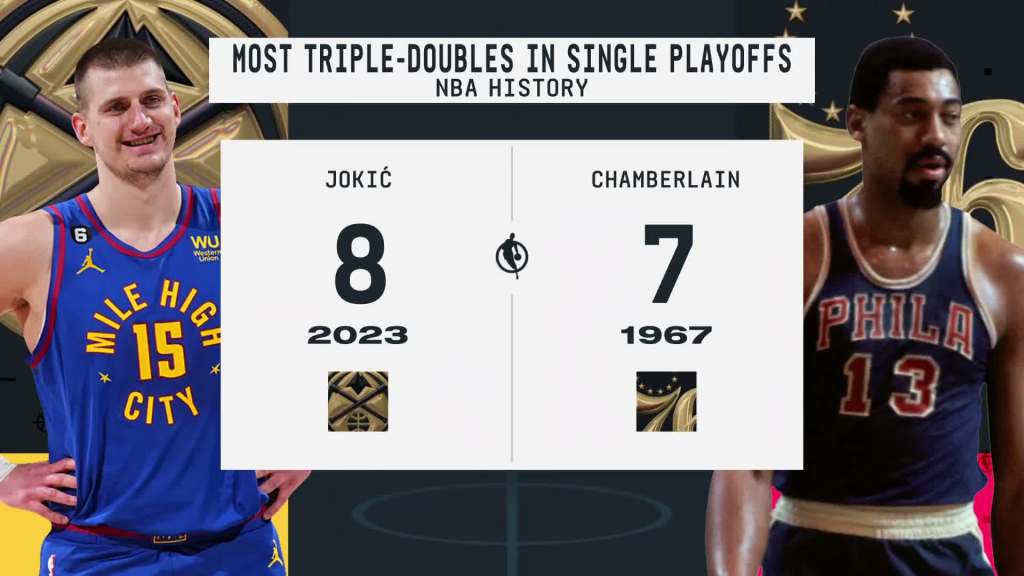 Jokic virou o jogador com o maior número de Triple-Double em uma única temporada de Playoffs, superando Chamberlain em 1967.