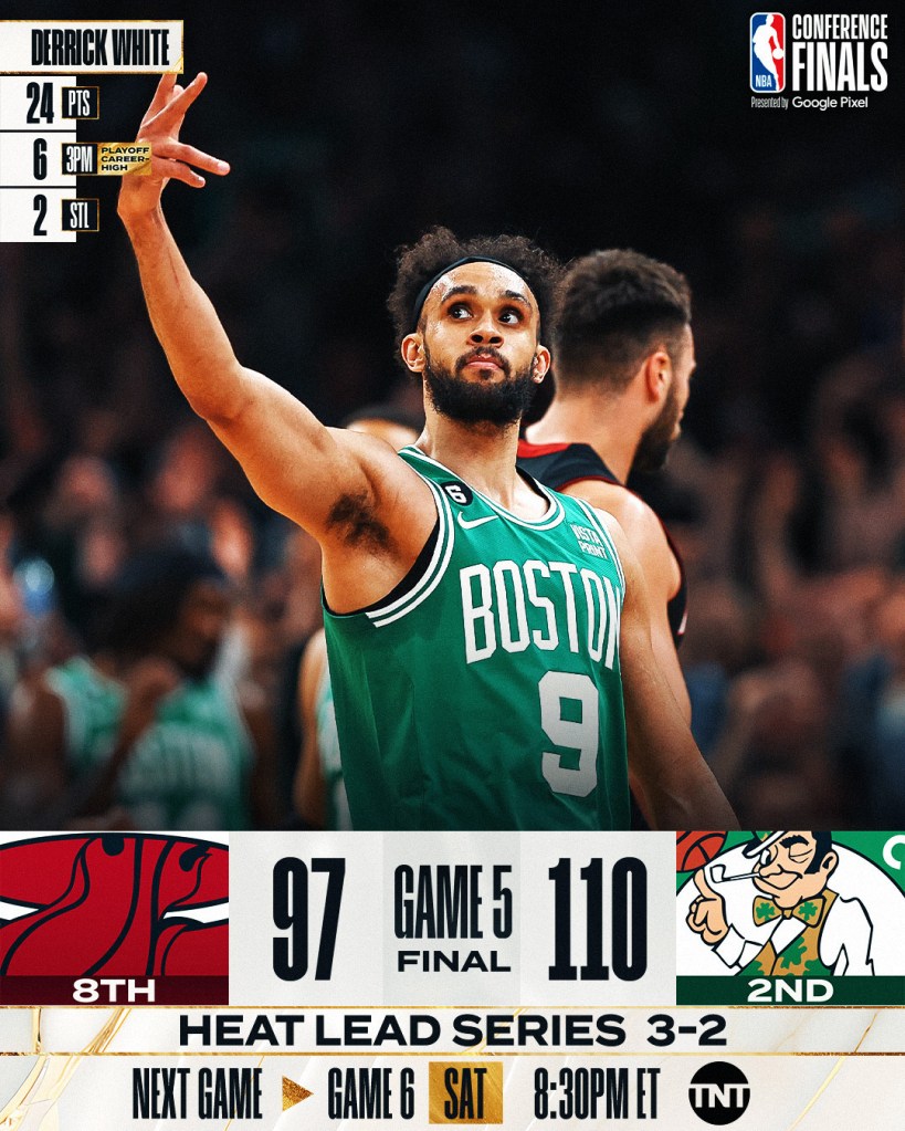 A Série está em 3×2 para o Heat, e o time de Miami ainda tem o “Match Game” e joga a partida 6 em casa. Porém, os Celtics mostraram que estão vivíssimos.