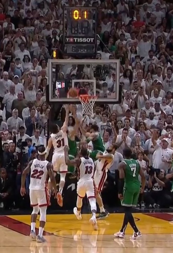 Naquele instante, toda a luta do Celtics para reverter o 3×0 na série, e conseguir alcançar o jogo 7 parecia ter ido água abaixo, porém, foi exatamente nos três segundos finais, que aconteceu o momento mais incrível da temporada na NBA até o momento. Derick White bate o lateral, Smart recepciona e arremessa, caprichosamente a bola não entra e sobra para White dá uma casquinha, faltando dois décimos para o tempo acabar. A vitória dos Celtics, a virada das viradas, aconteceu faltando dois décimos! A virada do Heat faltando 3 segundos, era a maior virada da temporada, mas quis o destino, que no mesmo jogo, ainda sobrasse tempo para os Celtics se manterem vivos na NBA.