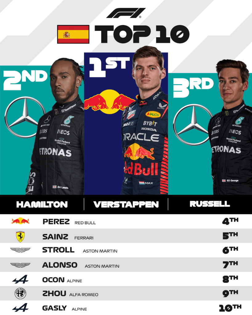 De ponta à ponta, Verstappen venceu facilmente o GP da Espanha 2023 da Fórmula 1. A Red Bull Racing viu o seu piloto nº 1 competir com ele próprio para ter alguma emoção na corrida. Da 2ª posição para baixo, também não teve grandes emoções, mas vale destacar a grande corrida de Lewis Hamilton, e as várias ultrapassagens de Russell e Perez. Ou o fato, de Alonso não querer ultrapassar Stroll.