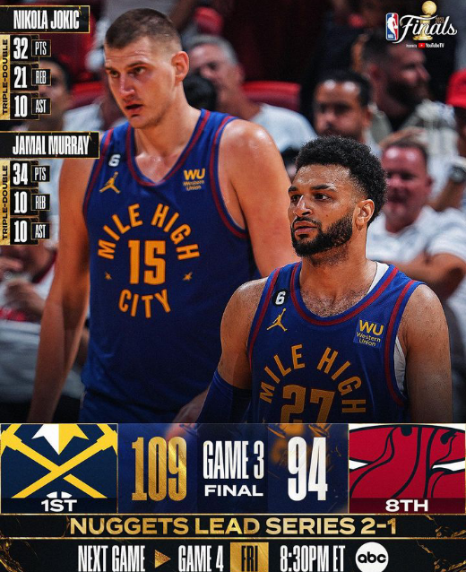 Jokic e Murray foram perfeitos, não à toa, ambos anotaram triple-double, e superaram a casa dos 60 pontos somados juntos. Aliás, só nas Finais, já é o segundo triple-double de Jokic, em todo o Playoffs desta temporada, o sérvio já anotou 10 triple-double, recorde absoluto na história da NBA.