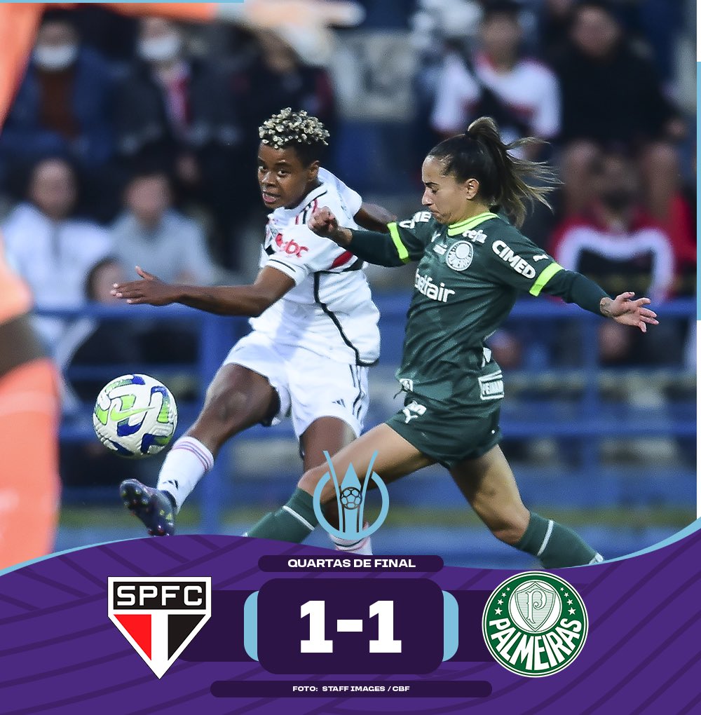 No Bruno José Daniel, um tempo para cada equipe. Se o Palmeiras reinou no primeiro tempo, e foi para o intervalo com a vitória, graças ao gol de Letícia. O São Paulo foi o dono do segundo tempo, mas só conseguiu o empate no final da partida, aplicando a lei da ex, com Maressa. 1×1, e tudo aberto para o duelo no Allianz Parque.