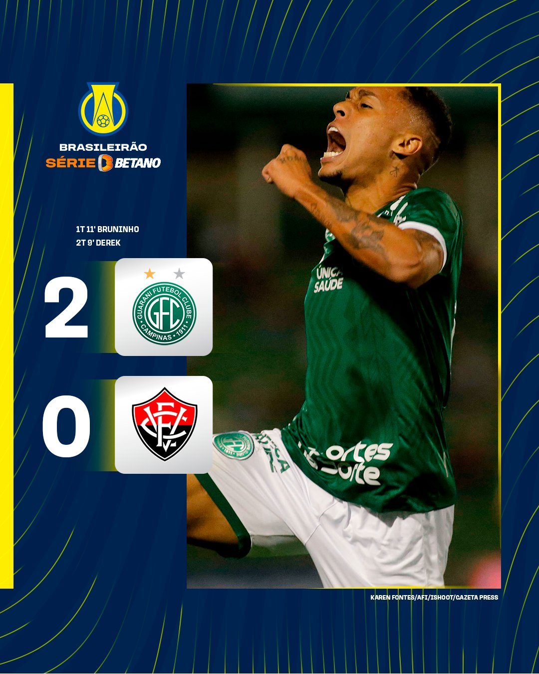 No Brinco de Ouro, o Guarani se impôs, bateu o Vitória e garantiu a recuperação no campeonato, mesmo continuando na “meiuca” da tabela. Enquanto isso, o rubronegro, que já foi líder isolado, permanece no G4 apenas pelo critério de desempate.