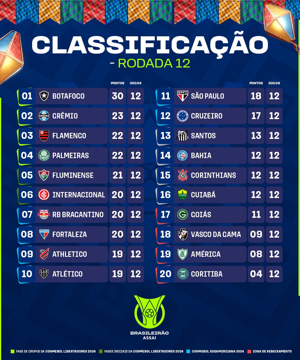 Obs.: A rodada 12 não teve nenhum empate!