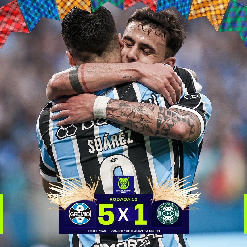 Na Arena do Grêmio, o imortal tricolor assustou a torcida ao empatar com o Coritiba no início da partida, porém depois foi surra. O time de Renato Gaúcho mantém a arrancada e já é o vice-líder do campeonato. Enquanto isso, o Coxa segue em último e sem saber o que é vencer no Brasileirão.