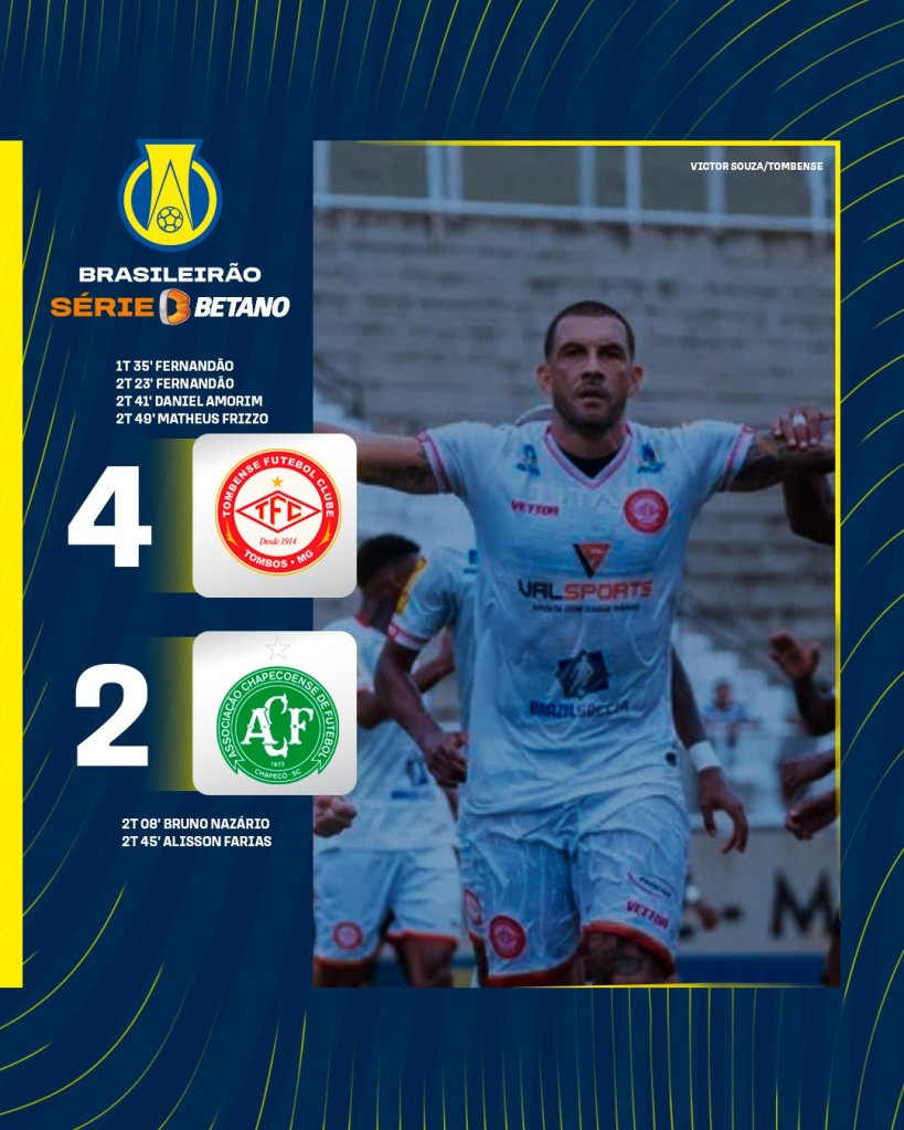 Em Muriaé, Fernandão se invocou, e a Tombense bateu a Chapecoense em um confronto direto na luta contra a degola.
