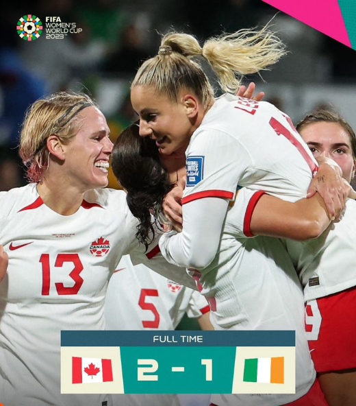 No jogo do dia, o Canadá superou a Irlanda em uma partidaça. McCabe até abriu o marcador para a Irlanda, em um golaço olímpico, marcado nos primeiros minutos do jogo, porém o Canadá mostrou porque é o atual campeão olímpico. Uma virada conquistada com um gol contra e um gol brigado feito por Leon. Uma vitória que mantém as canadenses muito vivas e, praticamente, elimina a Irlanda.