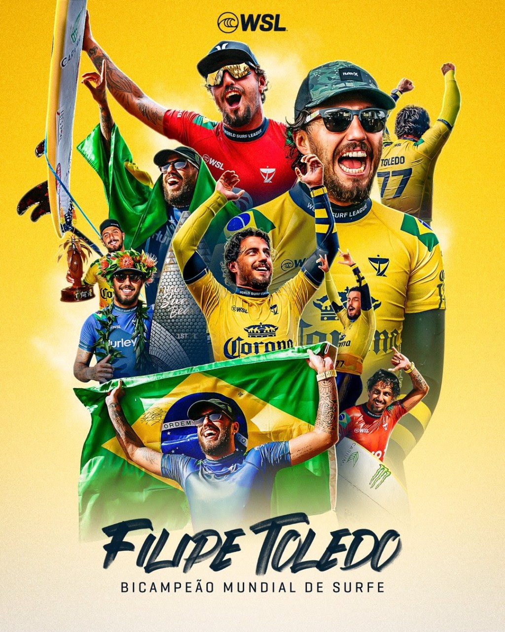 É o 7º título brasileiro na WSL, todos de 2014 para cá, sendo 3 conquistas de Medina (2014-2018-2021), 2 de Filipe (2022-23), 1 de Ítalo Ferreira (2019) e 1 de Mineirinho (2015). É a quinta temporada consecutiva que termina com o título na prancha brasileira.