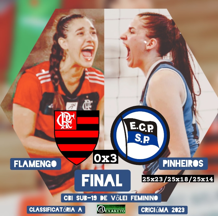 Como uma máquina! O Pinheiros não vacilou! Diante o, até então invicto, Flamengo, o clube paulista superou o ótimo início de Sofia e Maria Clara, por parte do clube carioca, conquistando os dois primeiros sets na raça, na garra e com a equipe esbanjando talento. Um jogo em que vários momentos não notava-se ser um confronto de equipes da base. O terceiro set foi, simplesmente, o melhor set do Pinheiros no campeonato, restando ao Flamengo, buscar uma saída, que era impossível diante o inspirado momento paulista. Um 3×0 sensacional, que enaltece a forte equipe do Pinheiros, e não diminui nada da marra e força do Flamengo. Equipes que valorizaram o torneio com uma grande Final e um Grandíssimo Campeão. Parabéns, Pinheiros!
