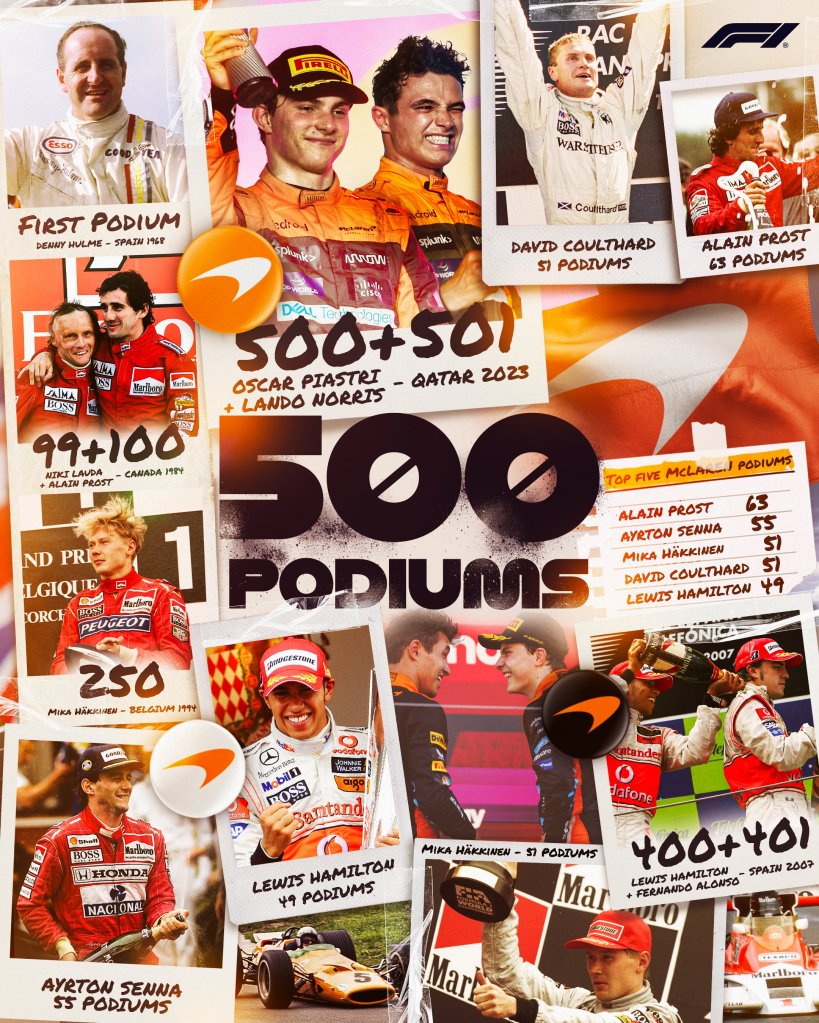 O outro destaque do GP fica para a excelente prova das McLaren! Oscar Piastri ganhou a prova Sprint e terminou em segundo na corrida principal. Enquanto, Lando Norris subiu ao pódio na corrida oficial. O pódio da dupla rendeu a McLaren a incrível marca de 500 e 501 pódios garantidos em toda sua história na modalidade.