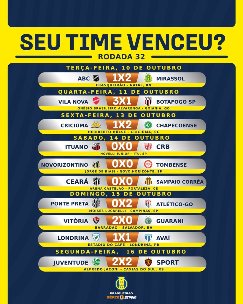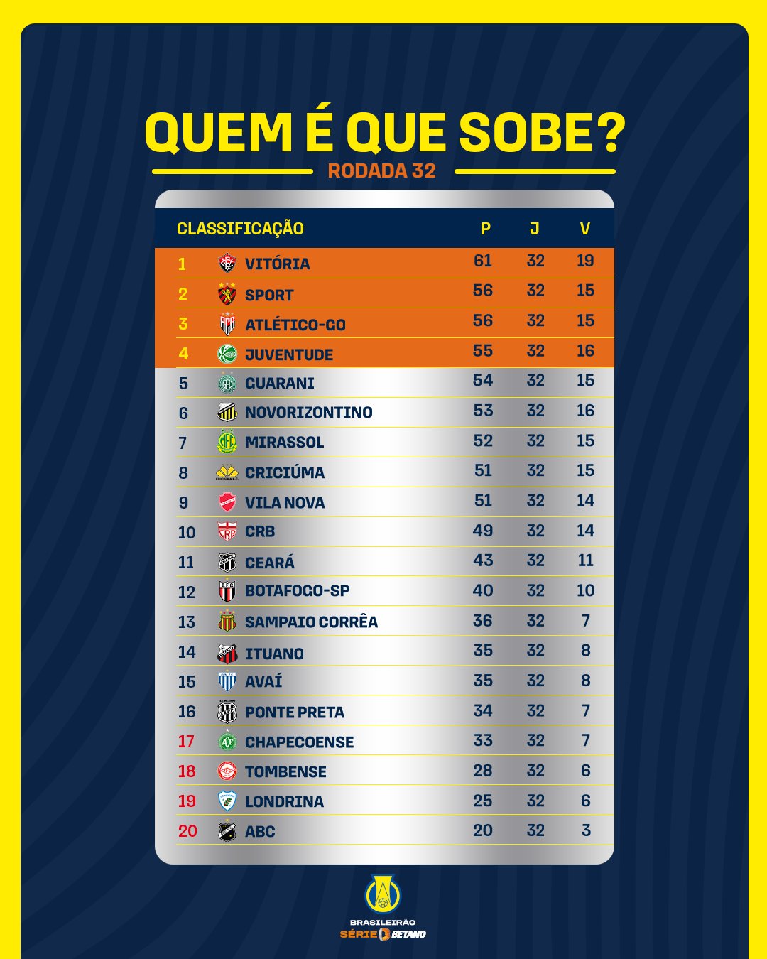 Quem se deu bem na rodada foi o poderoso líder Vitória. Os baianos superaram o Guarani, confronto direto pelo G4, e superaram a marca dos 60 pontos. O time de Léo Gamalho se aproxima de um acesso desejado pela torcida há 5 anos. Já o Bugre saiu do G4, porém segue colado.