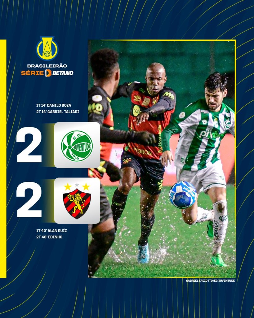 Sport e Juventude encerraram a rodada nesta segunda-feira (16) em um confronto direto pelo acesso sensacional. Com direito à chuva, pênalti perdido por Vagner Love e gol de empate nos acréscimos, um empate péssimo para ambos, entretanto, que manteve ambos no G4.