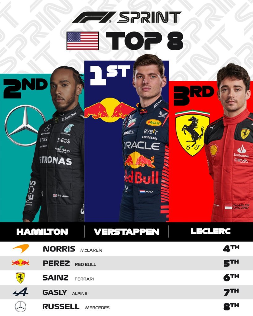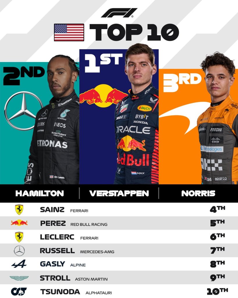 Mesmo largando em sexto e com freios desgastados, Verstappen venceu de novo na temporada. A 50ª vitória do holandês na Fórmula 1 teve tudo o que se espera de um tricampeão: Ultrapassagens, inteligência de estratégia, competência em administrar pneus e freios, além de bronca na equipe. Hamilton fez o seu melhor fim de semana na temporada, e mostra que a Mercedes começa a entender o regulamento novo, após quase dois anos. Aliás, a dupla fez “dobradinha” visto que foram primeiro e segundo também na Sprint. Norris, com mais um pódio, mostra o quanto a McLaren e o próprio piloto seguem evoluindo.
