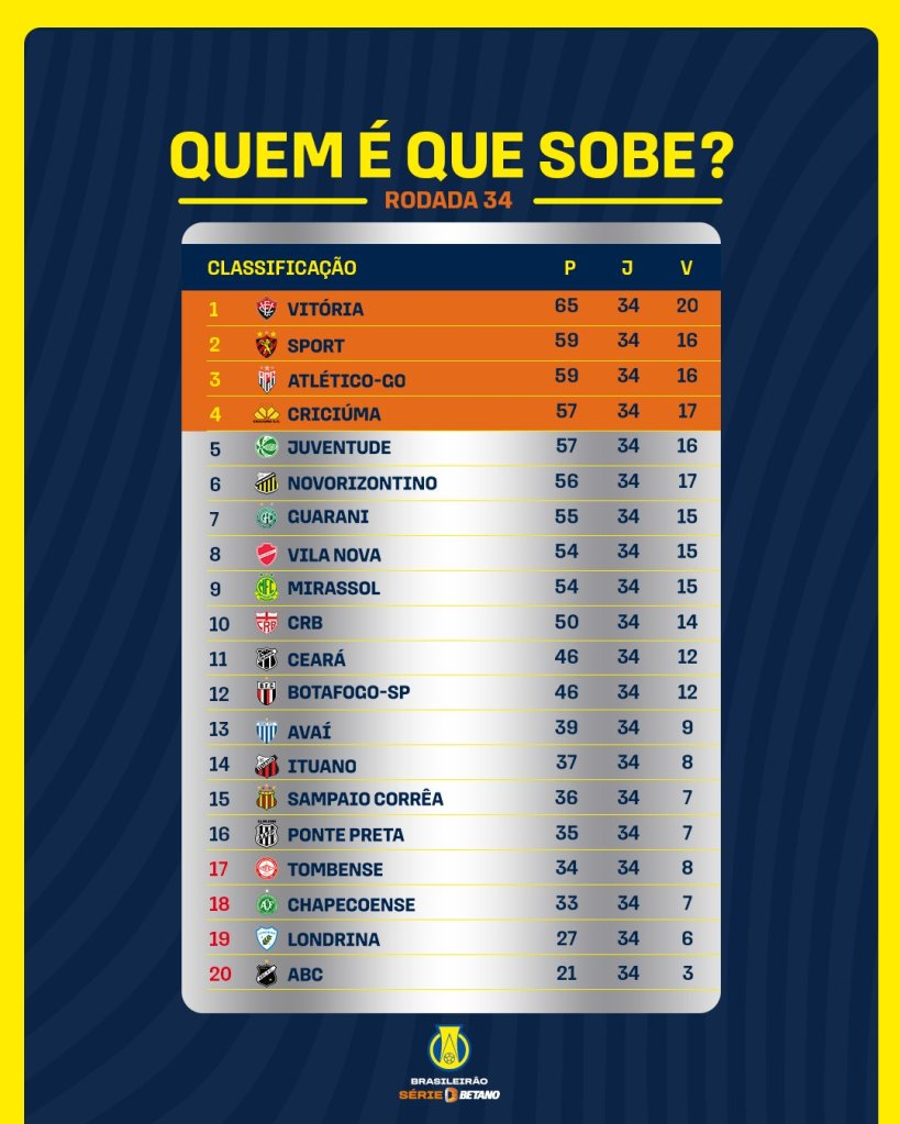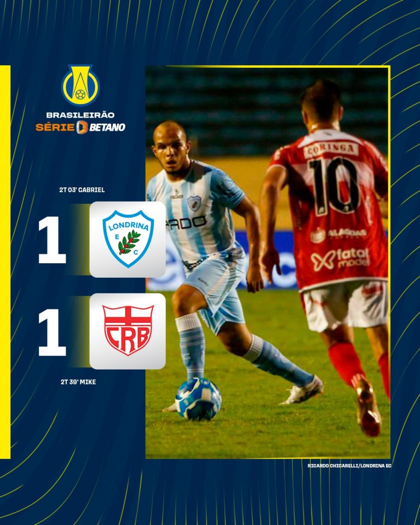 No domingo (29), dois empates e o sentimento de “não foi bom” para todos os lados. Londrina e CRB empataram, e o tubarão está virtualmente rebaixado, enquanto o Galo deu adeus às chances de acesso. Entre Vitória e Juventude, um empate, que tira o Juventude do G4 e evita a festa antecipada do Vitória pelo retorno.