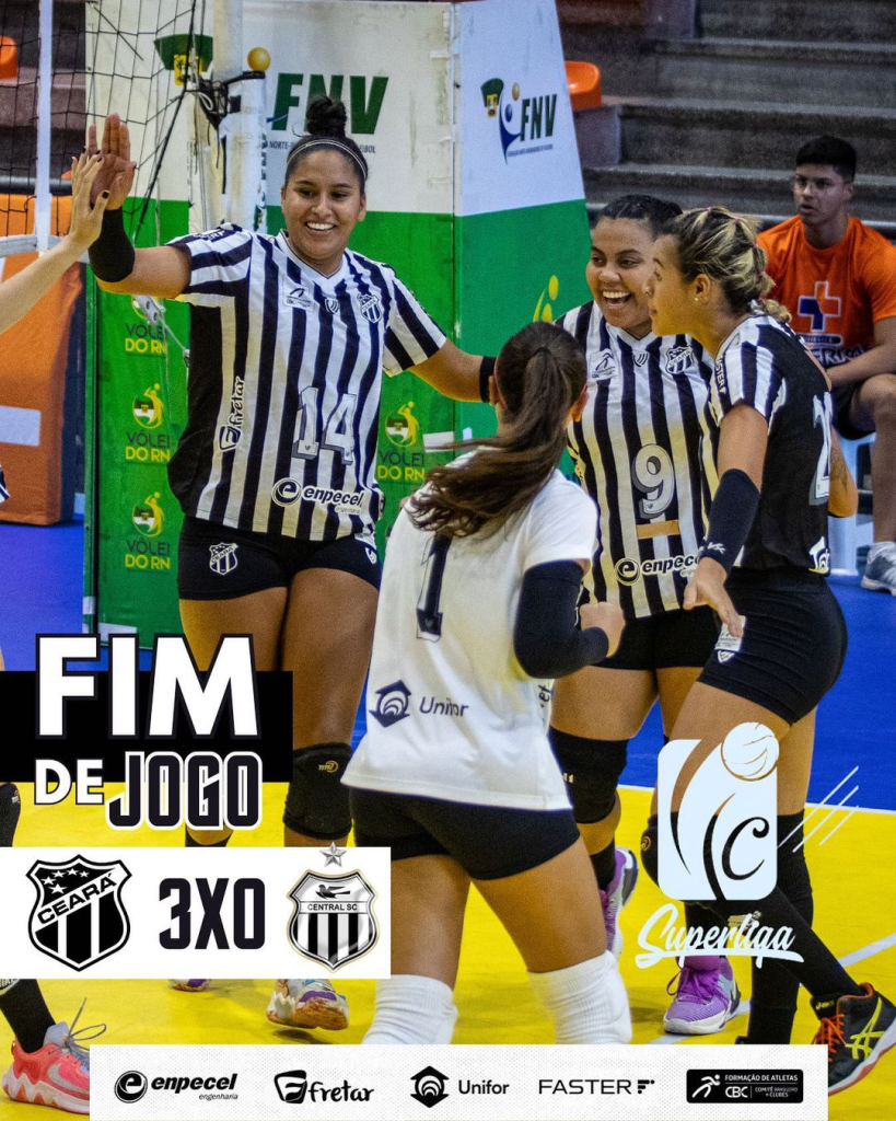 As 14:00, o Ceará entrou em quadra e não deixou o Central, de Pernambuco, ser feliz. Um 3×0 tranquilo, com um amplo domínio das alvinegras, principalmente, entre a metade e o fim dos sets. Dois jogos e duas vitórias soberanas, mantendo o favoritismo intacto.