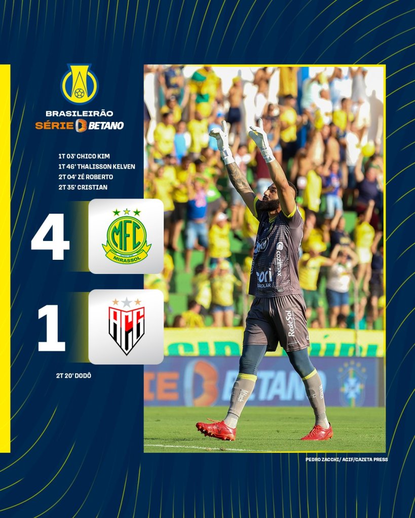 No Maião, o Mirassol atropelou o Atlético Goianiense! O Leão segue com chances de subir e o dragão também, porém o clube goiano saiu do G4, exatamente, na penúltima rodada! O Mirassol tá ali por perto, mas vai depender de combinação de resultado para chegar à elite.