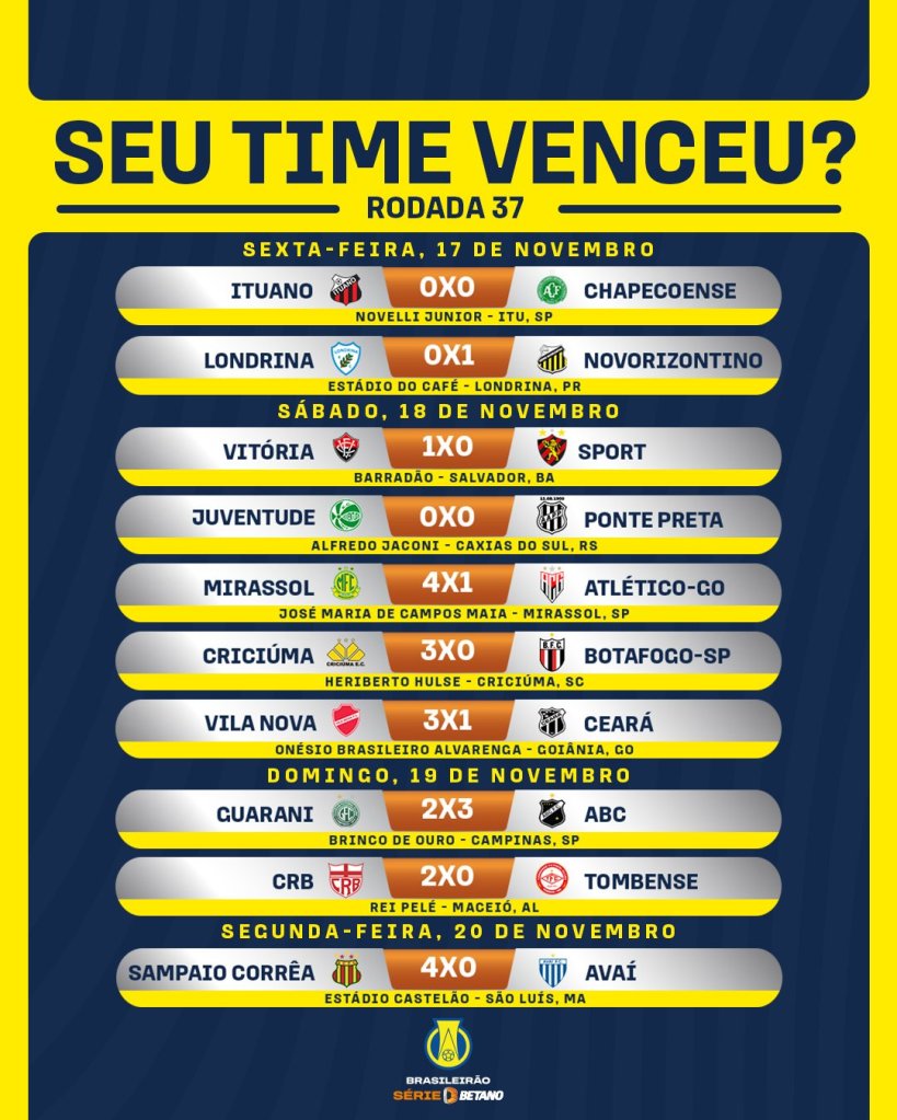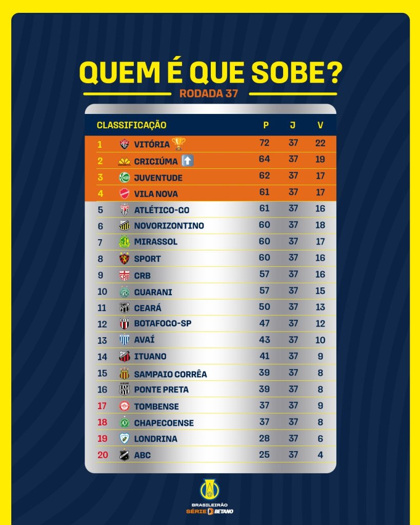 Penúltima rodada carimbando o acesso do Criciúma e a briga de 6 para subir e de 4 para não cair.