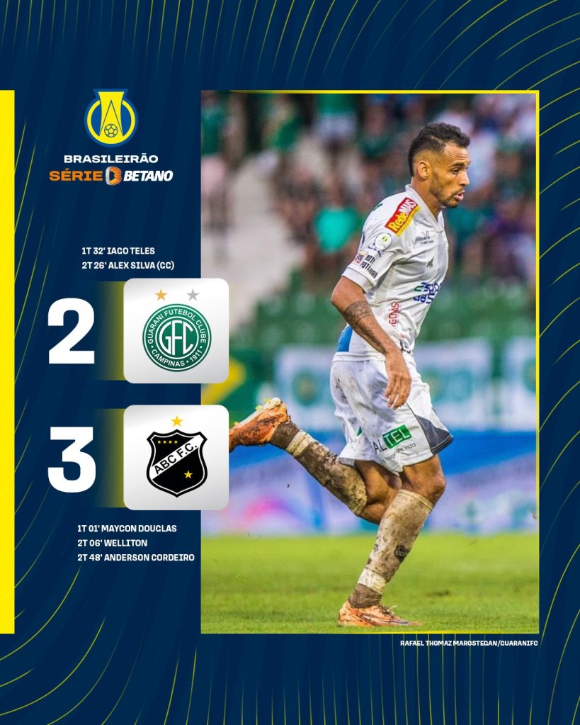 No Brinco de Ouro, o ABC precisou de 27 segundos para começar a fazer da vida do Guarani um inferno. O Bugre, que ainda sonhava com a luta pela Série A, conseguiu o empate por duas vezes, mas o destino queria a vitória do “Mais Querido de Natal”. Debaixo de tanta chuva, sobraram lágrimas para o torcedor do bugre que viu a Série A escapar em 7 rodadas terríveis. Já o ABC faz um fim de campeonato melhor do quando lutava por alguma coisa. O lanterna mais atrevido dos últimos tempos.