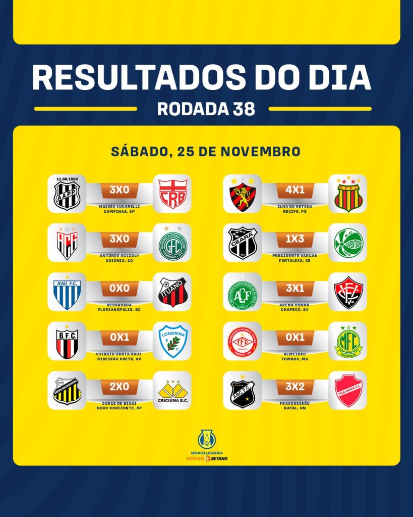 Última rodada fora de série na segundona! Tirando o duelo, em que o Londrina venceu o Botafogo de Ribeirão Preto por 1 a 0, e o empate sem graça, de Avaí e Ituano, que não serviam mais para nada na tabela de classificação, os outros 8 jogos deram um tempero maravilhoso na disputa final da série B 2023, um último capítulo digno do melhor filme hollywoodiano!