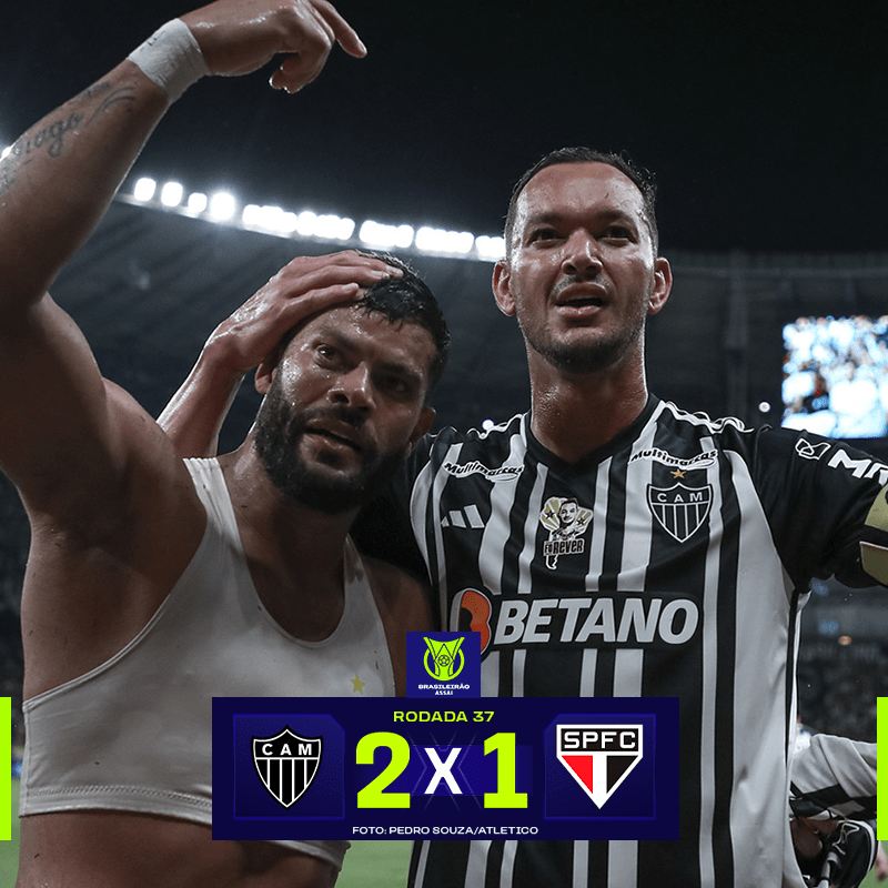 No Mineirão, um jogo que foi emocionante! O Atlético Mineiro foi abrir o placar já no final da partida, por volta dos 30 minutos do segundo tempo, com o golaço de Hulk! Porém, o São Paulo mostrou que não ia desistir do jogo, só porque um rival tava disputando o título com o Galo. O tricolor paulista conseguiu o empate, através de um pênalti convertido por Luciano, aos 44 minutos do Segundo Tempo! Porém em um time comandado por Felipão, e que tem Hulk e Paulinho no ataque, é difícil falar a palavra desistir! O artilheiro do Brasileirão não perdoou! Paulinho garantiu a vitória do Atlético com gol aos 50 minutos do segundo tempo. Com o resultado o Atlético Mineiro, ainda tem chances remotas de título e dorme mais uma rodada no G4, enquanto que o São Paulo curte as Férias!