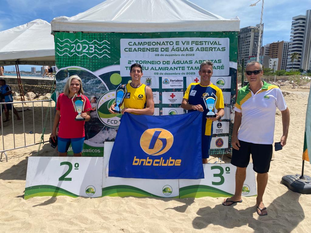 O BNB Clube também empolgou a torcida com os resultados obtidos dentro do Campeonato Cearense. Felipe Gardano manteve a sua hegemonia! Ele não perdeu em nenhum evento de águas abertas no estado este ano, e isto vem acontecendo desde 2022. Cauã Almeida conquistou o segundo lugar na prova e o terceiro lugar Geral. No feminino, nova dobradinha, com Ana Gabriela e Daniela Gardano. Mantendo assim a hegemonia do Clube nas águas abertas em disputas de campeonatos cearenses. Ressaltando o excelente trabalho dos professores: Felipe de Freitas, Wilson Lima e Marcelo Augusto, com seus atletas no mar.